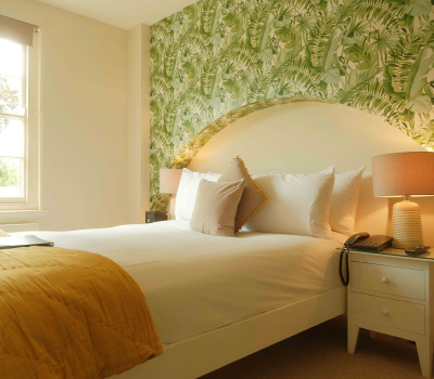 A split level deluxe room, Juniper has its own front door, courtyard and reception area and is the dog friendly hotel room at the hotel where pets can properly feel at home. The modern bathroom with walk-in rain shower is twinned with the simple farmhouse bedroom with cast iron fireplace for cosy autumnal evenings in a private haven.